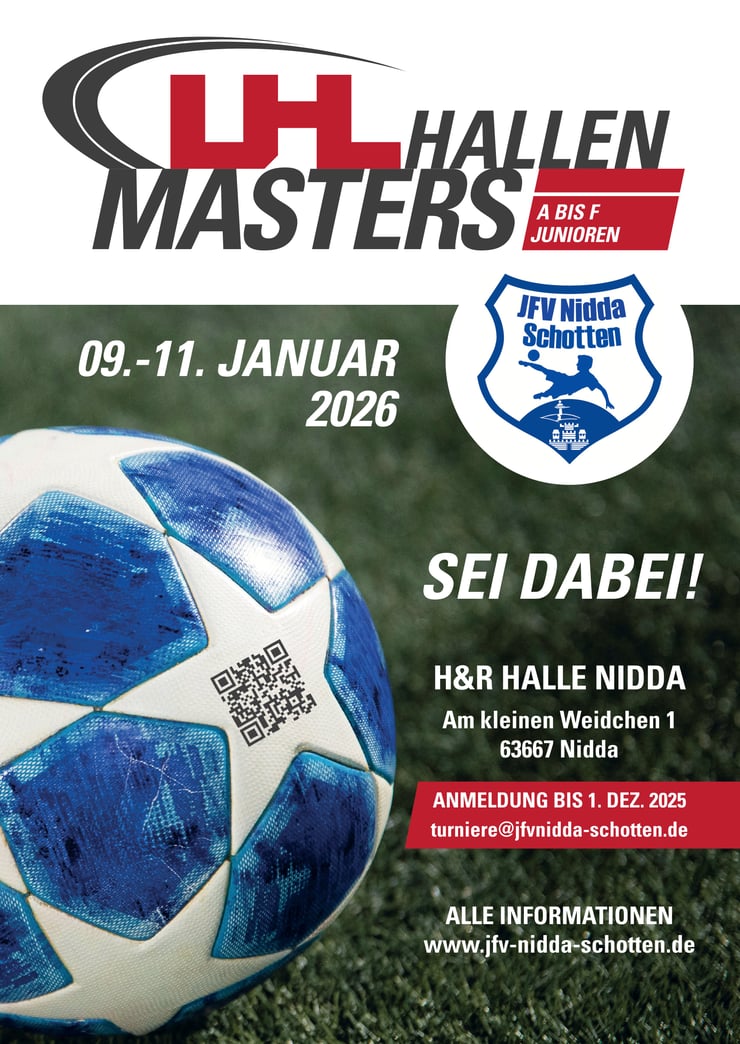 Es ist wieder soweit – das Uhl Hallenmasters geht in die zweite Runde! Vom 09. bis 11. Januar 2026 verwandelt sich die Sporthalle der Haupt- und Realschule Nidda wieder in eine echte Fußballarena. Nach der erfolgreichen Premiere im letzten Jahr dürfen sich alle Fußballfans auch diesmal wieder auf hochklassigen Jugendfußball in der Halle freuen.